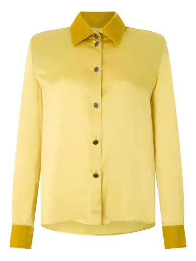 ochre yellow silk velvet inserts button fastening long sleeves buttoned cuffs