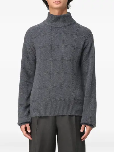 grey textured finish high neck long sleeves ribbed hem label on the back