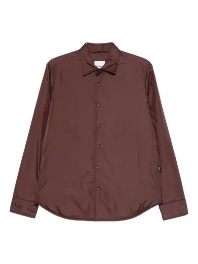brown button fastening long sleeves classic collar curved hem