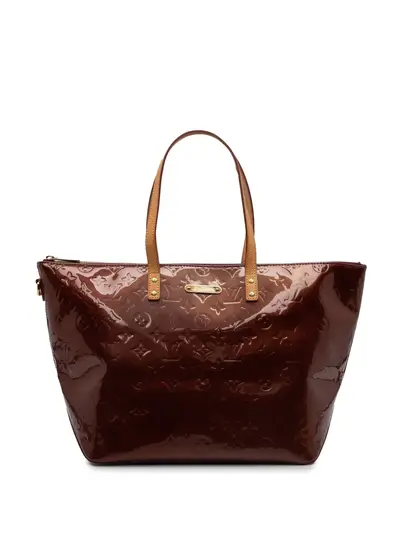 monogram vernis leather body flat vachetta leather straps top zip closure interior zip and slip pockets red Serial Number: FL5007 Inclusions: dust bag. Condition: GOOD. This previously owned and used item is in good condition with minimal signs of use. This may include fading of material or plating and scratches. Please refer to the photos on this product page for a detailed view of the item, including any damages declared.