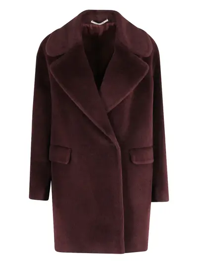 burgundy notched lapel front pockets long sleeves double-breasted button fastening