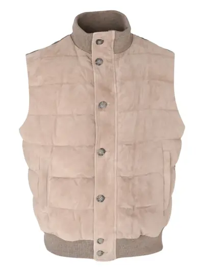 brown button fastening ribbed collar and hem zip fastening two-way zip front welt pockets