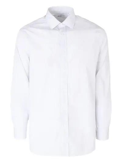 white pinstripe pattern button fastening long sleeves buttoned cuffs point collar