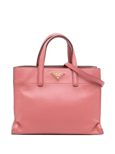 saffiano leather body flat leather handles detachable strap open compartments with magnetic snap closure top zip compartment interior zip and slip pockets pink Inclusions: shoulder strap. Condition: GOOD. This previously owned and used item is in good condition with minimal signs of use. This may include fading of material or plating and scratches. Declared Damages: Handle/Strap Feature(s) Minor Loose Stitching. Handle/Strap Feature(s) Minor Peeling. Please refer to the photos on this product page for a detailed view of the item, including any damages declared.