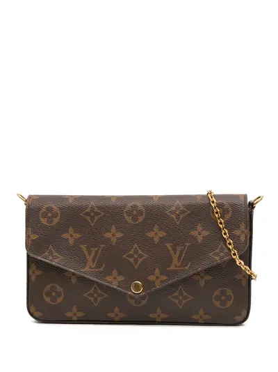 monogram canvas body detachable gold-tone chain shoulder strap top flap with snap closure detachable zip pouch cardholder brown Inclusions: box, shoulder strap. Condition: GOOD. This previously owned and used item is in good condition with minimal signs of use. This may include fading of material or plating and scratches. Declared Damages: Front Feature(s) Minor Splitting. Please refer to the photos on this product page for a detailed view of the item, including any damages declared.