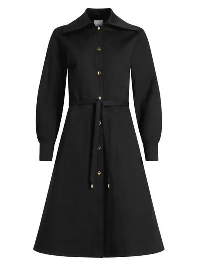 black organic cotton collared neckline button fastening belted waist long sleeves