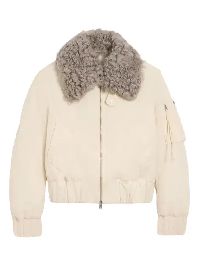 ivory shearling collar zip fastening two side welt pockets long sleeves
