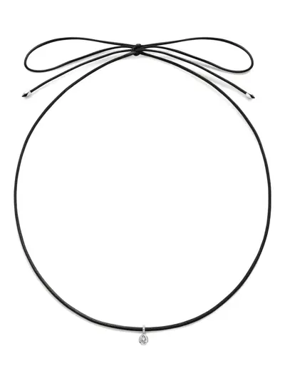 silver-tone recycled sterling silver black cord pear-cut diamond circular pendant adjustable tie fastening Normal everyday use and external agents may reduce the lustre of gemstones and gold surfaces. To maintain, use specific, non-abrasive products specially meant for cleaning jewellery.