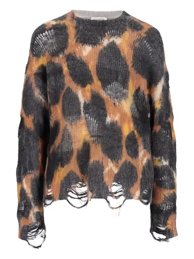 Laneus frayed leopard-print sweater 29944342 (lpn31052538)