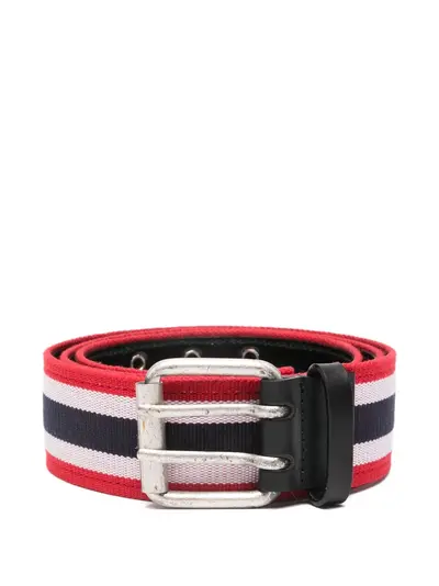 1990s red/black/white striped pattern silver-tone buckle fastening eyelet detailing Condition: UNWORN, WITH TAGS. This piece is previously owned but remains unworn and in its original condition. Comes complete with its original tags attached.
