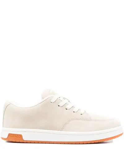 light beige logo detail lace-up fastening perforated toebox flat rubber sole