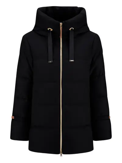 black wool blend quilted two-way zip fastening drawstring hood long sleeves