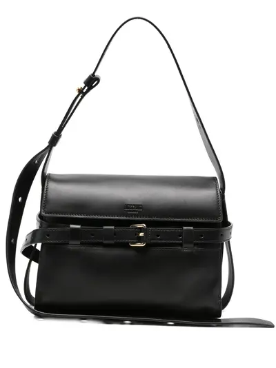 black adjustable shoulder strap gold-tone hardware buckle-fastening strap logo detail internal zip-fastening pocket