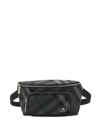 charcoal grey check pattern zip closure adjustable clip belt exterior zip pocket knight design plaque