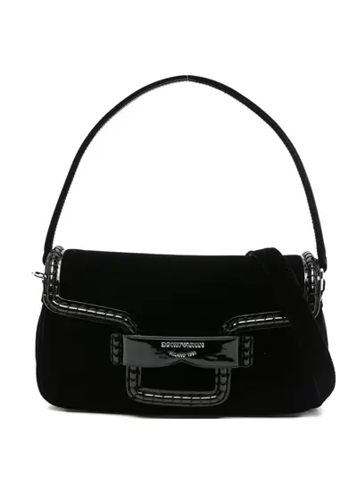 black single top handle logo plaque adjustable shoulder strap internal slip pocket