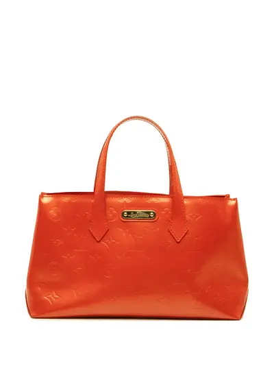 monogram vernis leather body flat leather handles open top with a lobster claw clasp closure interior zip pocket red Serial Number: MI0029 Inclusions: dust bag. Condition: EXCELLENT. This previously owned item is in near-perfect condition with no signs of damage or use. Please refer to the photos on this product page for a detailed view of the item, including any damages declared.