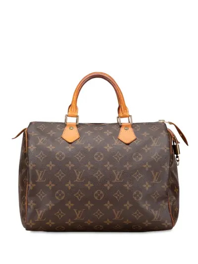 monogram canvas body with vachetta leather trim rolled vachetta leather handles top zip closure interior slip pocket brown Serial Number: SP0925 Inclusions: padlock, key. Condition: GOOD. This previously owned and used item is in good condition with minimal signs of use. This may include fading of material or plating and scratches. Declared Damages: Practical Attachment Feature(s) Moderate Rust/Tarnish. Handle/Strap Feature(s) Minor Loose Stitching. Please refer to the photos on this product page for a detailed view of the item, including any damages declared.