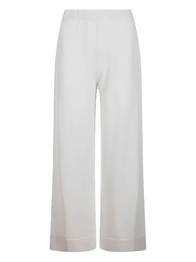 white elasticated waistband wide leg panelled hem