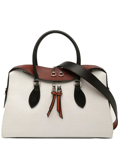 epi leather body rolled leather handles detachable flat leather strap top zip closure interior slip pockets white Serial Number: FL0138 Inclusions: shoulder strap, dust bag. Condition: EXCELLENT. This previously owned item is in near-perfect condition with no signs of damage or use. Please refer to the photos on this product page for a detailed view of the item, including any damages declared.