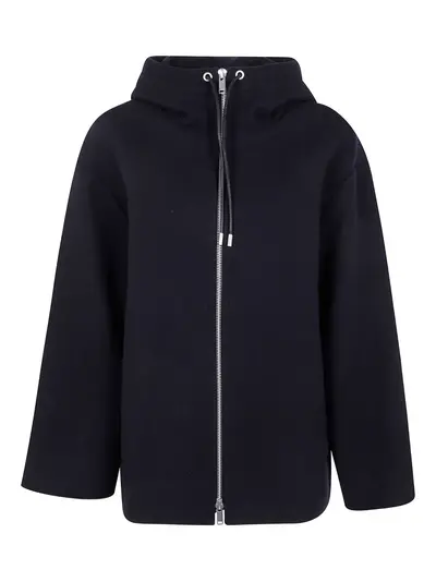 dark navy hood zip fastening drawstring silver-tone hardware long sleeves