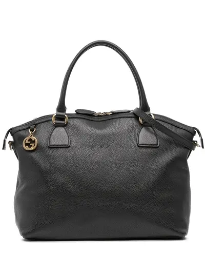 leather body rolled handles detachable flat leather strap top zip closure interior zip and slip pockets black Serial Number: 449660 493492 Inclusions: shoulder strap. Condition: GOOD. This previously owned and used item is in good condition with minimal signs of use. This may include fading of material or plating and scratches. Please refer to the photos on this product page for a detailed view of the item, including any damages declared.