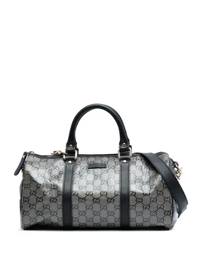 coated canvas body with leather trim rolled leather handles detachable flat leather shoulder strap top zip closure interior zip pocket gray Serial Number: 203696 213317 Inclusions: shoulder strap. Condition: GOOD. This previously owned and used item is in good condition with minimal signs of use. This may include fading of material or plating and scratches. Declared Damages: Handle/Strap Feature(s) Minor Splitting. Please refer to the photos on this product page for a detailed view of the item, including any damages declared.