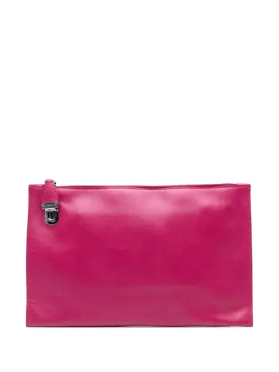 saffiano leather body top zip closure with metal lock closure interior zip and slip pockets pink This item has no inclusions. Condition: GOOD. This previously owned and used item is in good condition with minimal signs of use. This may include fading of material or plating and scratches. Declared Damages: Handle/Strap Feature(s) Minor Loose Stitching. Please refer to the photos on this product page for a detailed view of the item, including any damages declared.