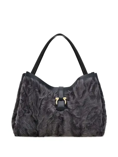 Salvatore Ferragamo large fur-embellished top-handle tote bag 32091159 (lpn31053079)
