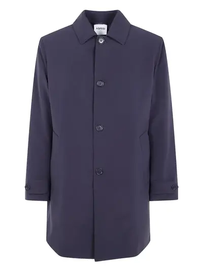 navy button fastening long sleeves buttoned cuffs front pockets classic collar