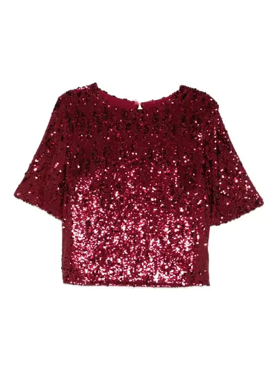 dark red sequin embellishment round neck short sleeves keyhole detail to the rear rear button fastening