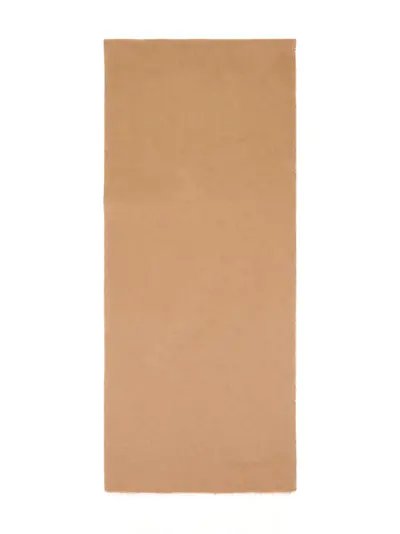 camel beige fringed edge embroidered logo two-tone design silk-cashmere blend