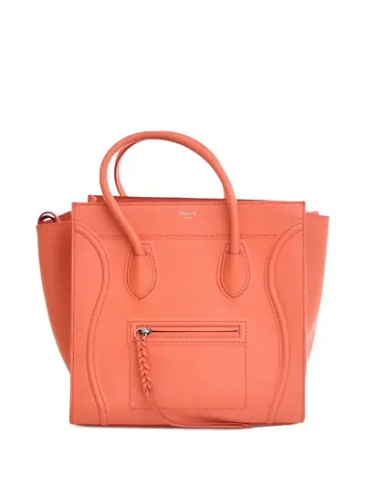 leather body rolled leather handles open top interior and exterior zip pockets orange Inclusions: dust bag. Condition: EXCELLENT. This previously owned item is in near-perfect condition with no signs of damage or use. Due to the exclusivity of this item and its limited availability, processing and delivery might take longer than usual. Please refer to the photos on this product page for a detailed view of the item, including any damages declared.