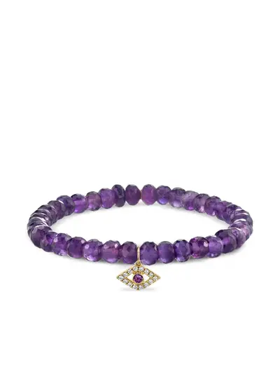 purple 14k yellow gold amethyst beads eye charm round-cut amethyst round-cut diamonds Normal everyday use and external agents may reduce the lustre of gemstones and gold surfaces. To maintain, use specific, non-abrasive products specially meant for cleaning jewellery.