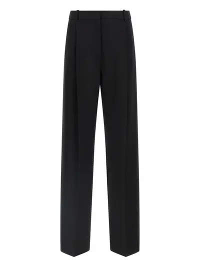 black pockets hook and zip fastening front button stretched pleat wide leg