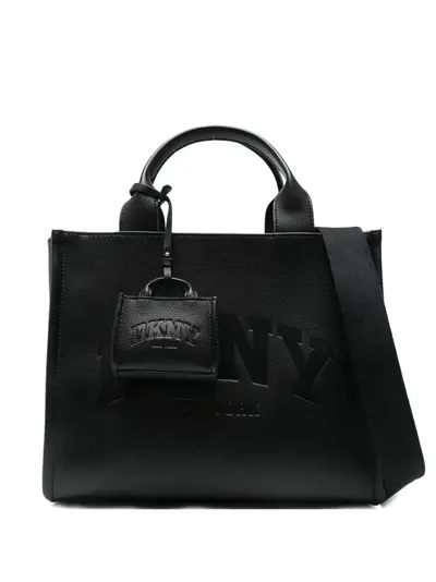 black debossed logo lettering top handles detachable charm detachable shoulder strap zip fastening