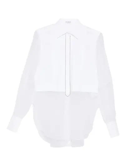 white transparent panel detailing classic collar concealed front fastening long sleeves curved hem