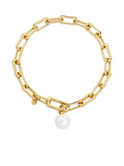 gold 18K gold vermeil chain link design lobster claw fastening single pearl charm Normal everyday use and external agents may reduce the lustre of gemstones and gold surfaces. To maintain, use specific, non-abrasive products specially meant for cleaning jewellery. Pearls should be the last thing that you put on in the morning and the first thing you take off at night. Avoid contact with perfumes or creams, and simply wipe with a soft cloth to clean.
