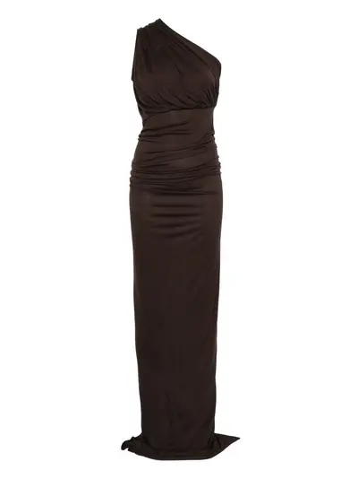 brown one-shoulder draped detailing gathered detailing floor-length rear slit