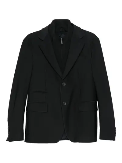 black button fastening zip fastening notched lapels front flap pockets buttoned cuffs