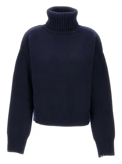 navy blue roll-neck ribbed cuffs and hem dropped shoulders