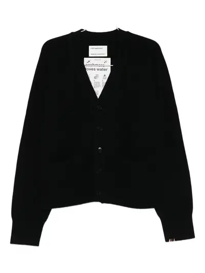 black cashmere V-neck front button fastening ribbed trim