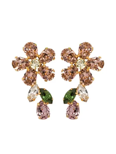 gold 18kt gold plated flower embellishment drop design stone embellishment These earrings come as a pair. Normal everyday use and external agents may reduce the lustre of gemstones and gold surfaces. To maintain, use specific, non-abrasive products specially meant for cleaning jewellery.