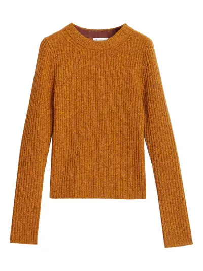 orange merino ribbed texture round neck long sleeves