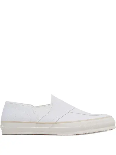 white panelled design slip-on style elasticated side panel round toe flat rubber sole