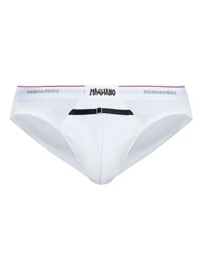 white ribbed knit elasticated waistband buckle detail logo label tonal stitching Just a reminder that this piece must be tried on over your own garments.