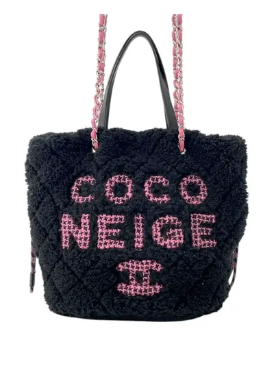 shearling body flat leather handles leather woven chain straps open top with drawstring and magnetic snap closure interior slip pocket black Inclusions: authenticity card. Condition: EXCELLENT. This previously owned item is in near-perfect condition with no signs of damage or use. Due to the exclusivity of this item and its limited availability, processing and delivery might take longer than usual. Please refer to the photos on this product page for a detailed view of the item, including any damages declared.