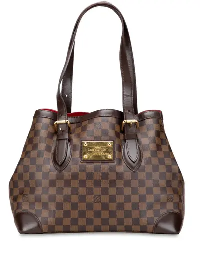 damier ebene canvas body flat leather handles open top with lobster clasp closure interior zip and slip pockets brown This item has no inclusions. Condition: GOOD. This previously owned and used item is in good condition with minimal signs of use. This may include fading of material or plating and scratches. Declared Damages: Interior Pocket Feature(s) Minor Loose Stitching. Please refer to the photos on this product page for a detailed view of the item, including any damages declared.