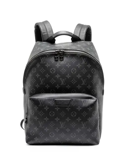 monogram eclipse canvas body top handle adjustable leather back straps zip around closure front exterior zip and slip pockets interior slip pockets black Serial Number: FL0129 This item has no inclusions. Condition: EXCELLENT. This previously owned item is in near-perfect condition with no signs of damage or use. Please refer to the photos on this product page for a detailed view of the item, including any damages declared.