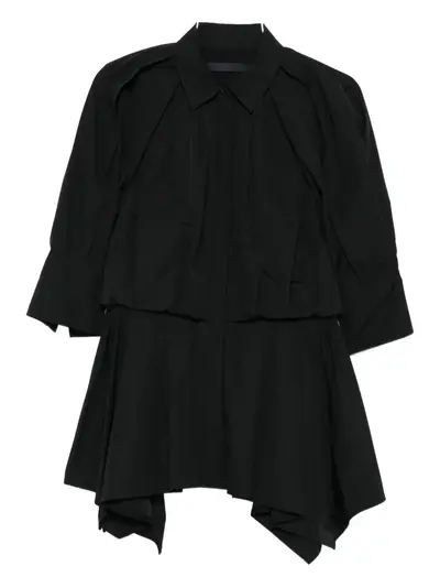 black gathered detailing three-quarter sleeves buttoned cuffs pointed collar asymmetric hem
