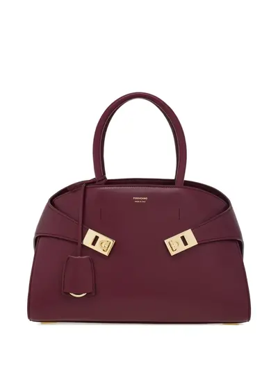dark red top handle detachable shoulder strap gold-tone hardware rectangular studs keychain charm